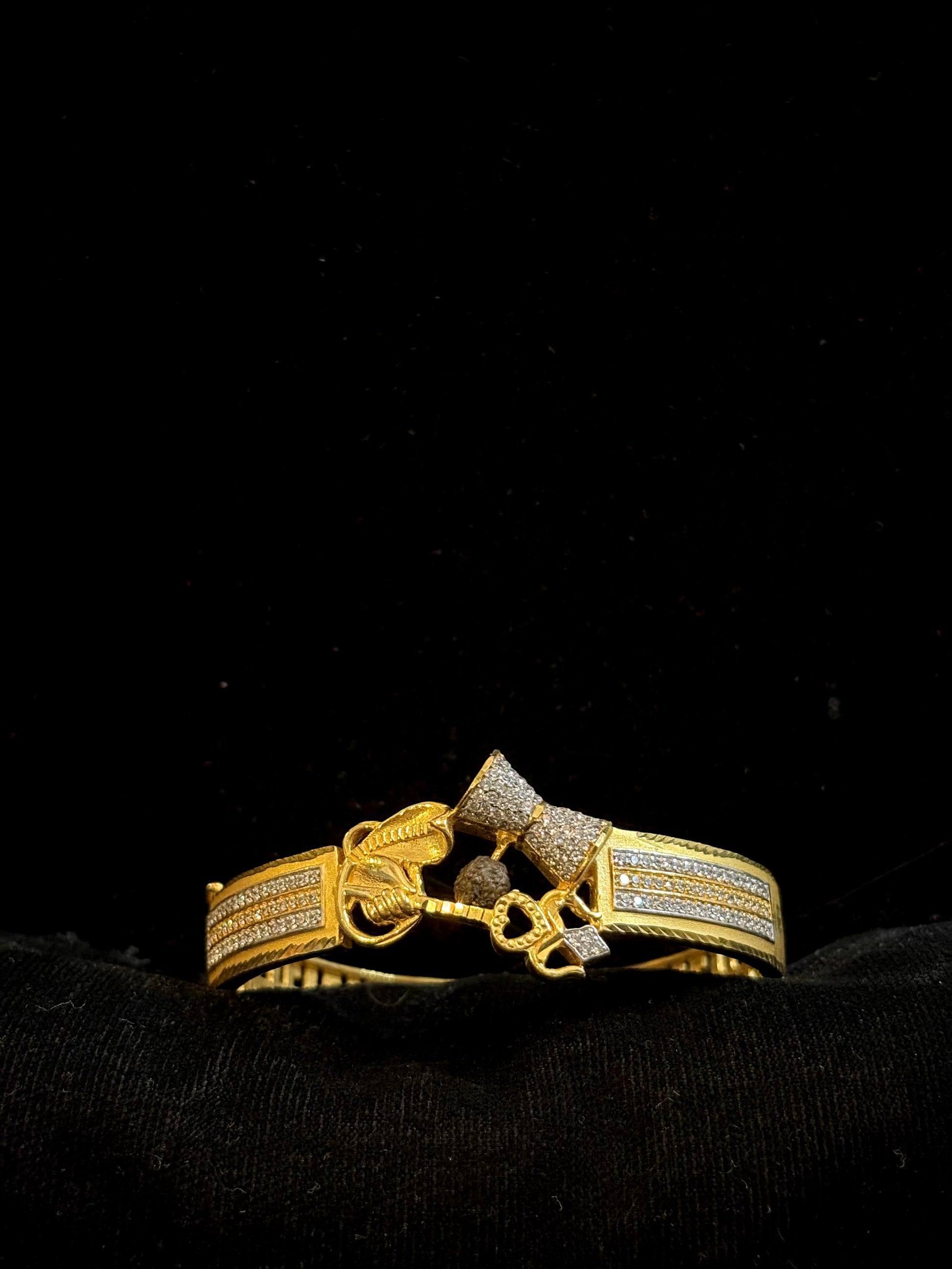 With an Adjustable lock, it is designed to fit various wrist sizes, ensuring a Customizable fit. Whether you're wearing it for a special occasion or adding a sophisticated touch to your everyday look, this kada is available at a price of ₹4300/-. Its timeless design and sturdy construction make it an excellent choice for anyone looking for a blend of luxury and comfort.