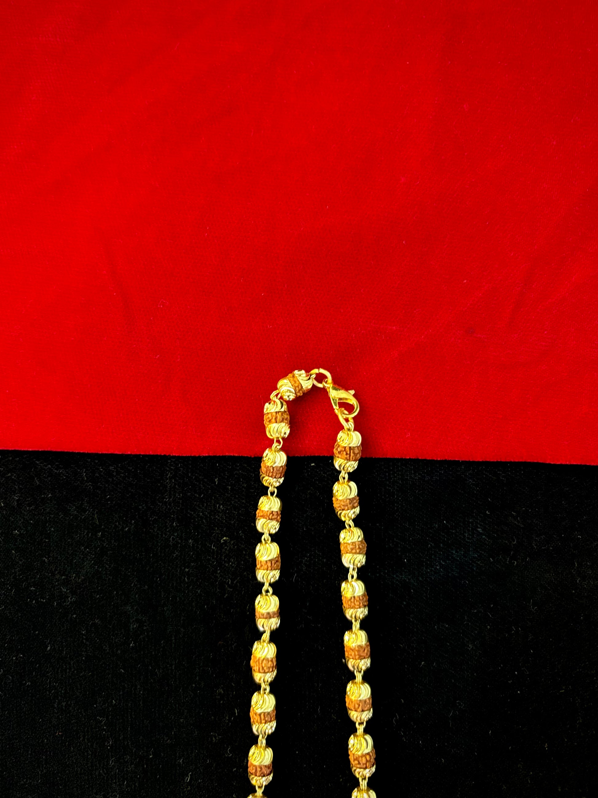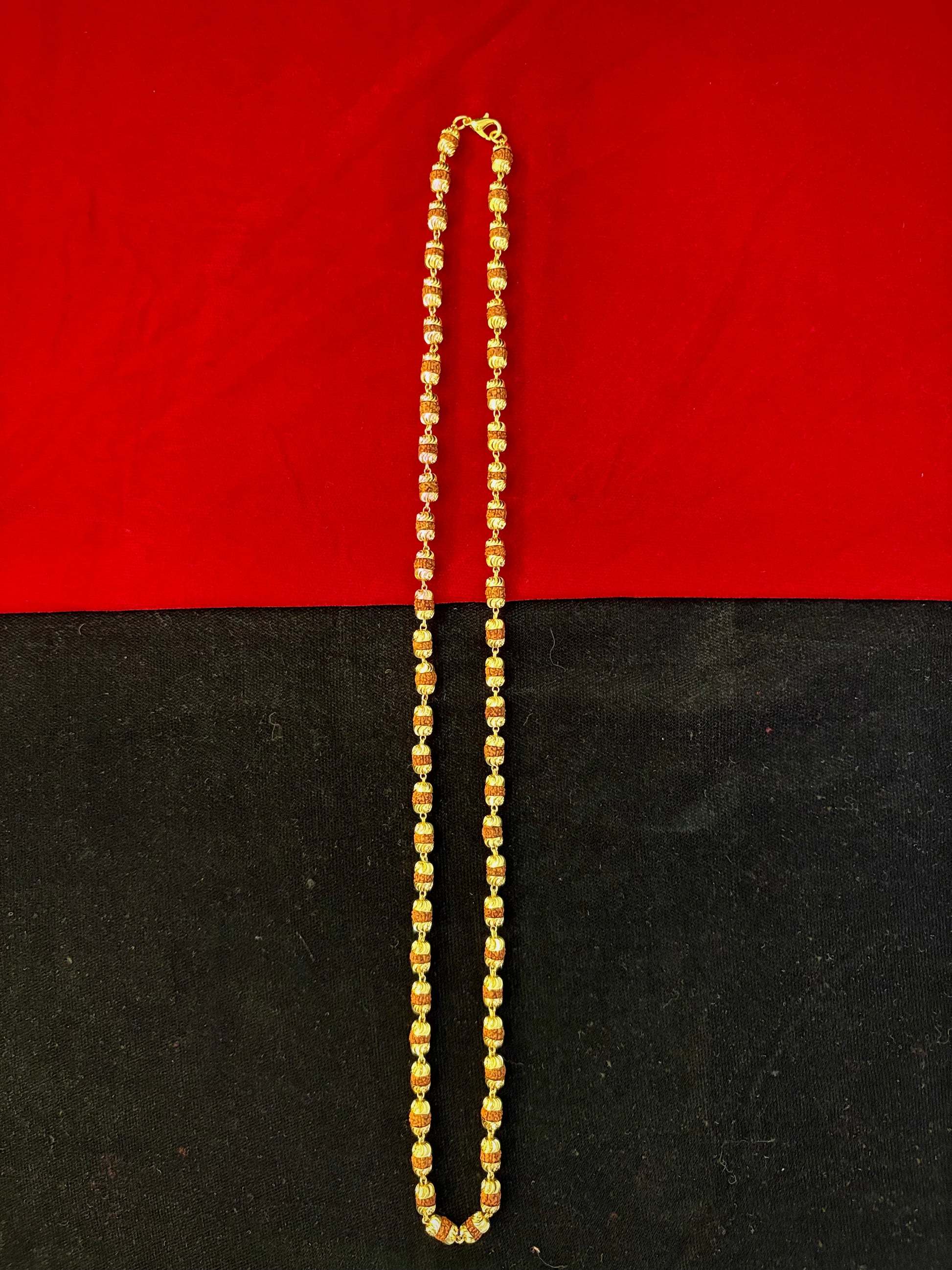 This 1 gram gold plated Rudraksha mala is designed to bring both elegance and spirituality into your life. Made with 100 milligrams of gold forming, the mala offers a luxurious finish with durability. Weighing 18 grams, it is comfortable yet substantial enough for daily wear.