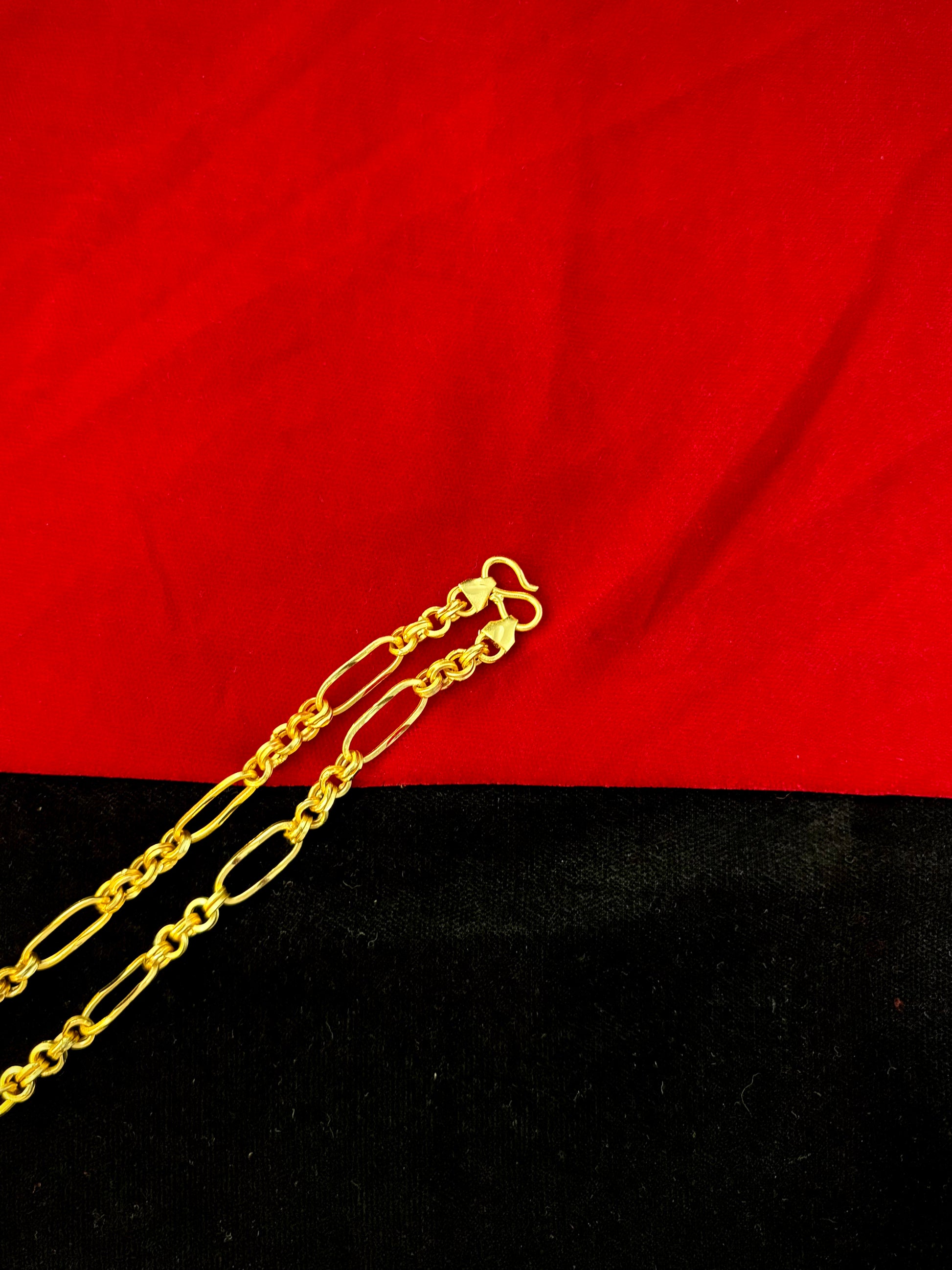 With a 22-inch length, this Figaro Chain is the perfect accessory for any casual or formal occasion. The intricate lotus design adds a touch of sophistication, making it a versatile piece to complement various outfits. Available at an affordable price of ₹3200/-, this chain combines beauty, strength, and timeless style.