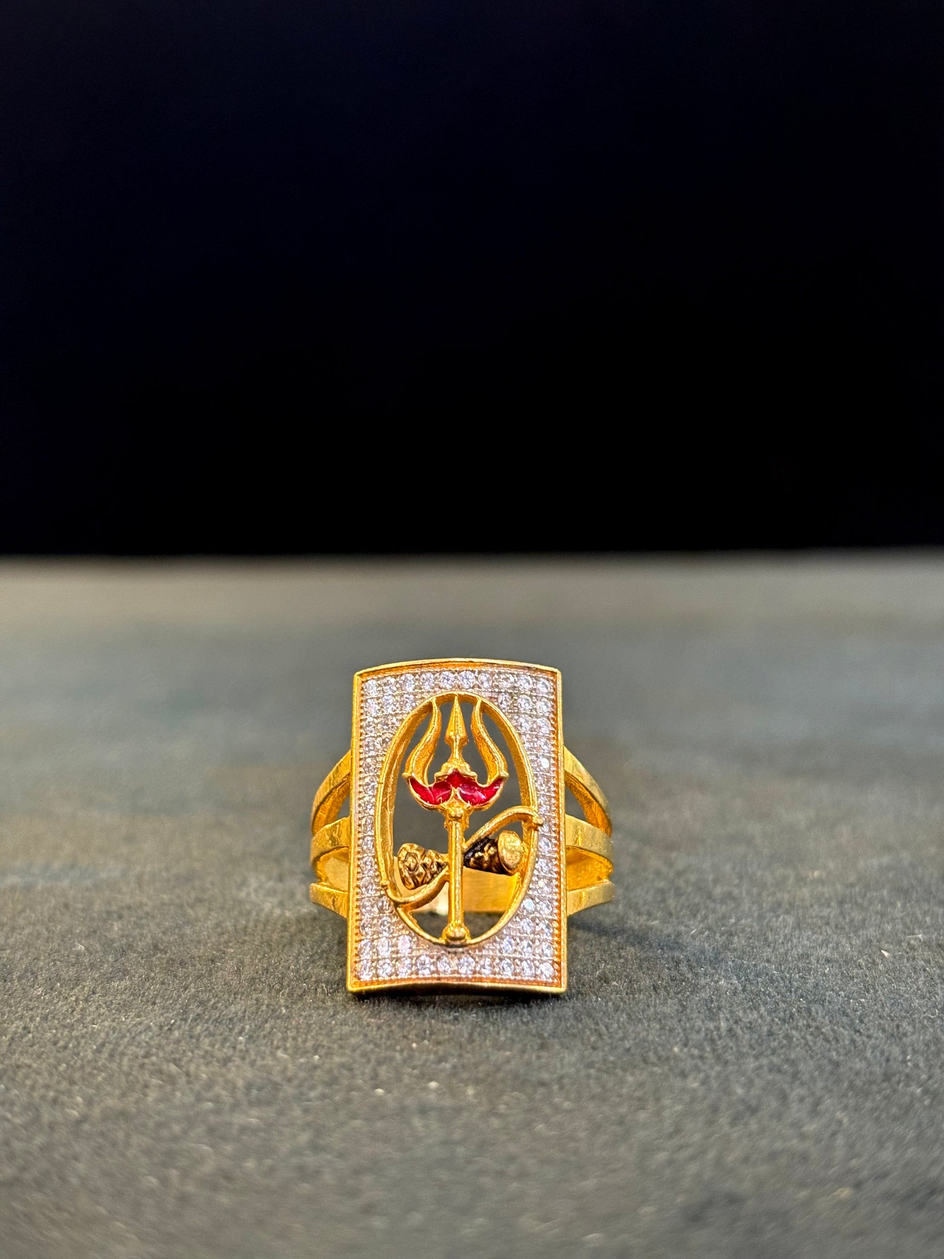 Mahadev Trident Ring – 1 Gram Gold-Plated - Size 18 to 28, 5g